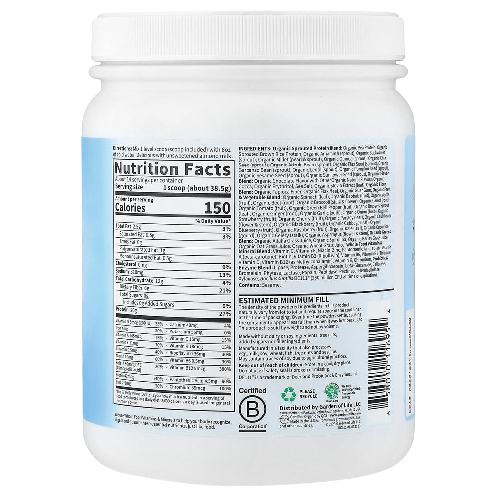 Garden of Life RAW Økologisk Måltidserstatning Shake er en komplet, plantebaseret næringsdrik designet til at give din krop alt, hvad den har brug for til et fuldstændigt måltid. Denne chokolade-smagende shake kombinerer 20g rent protein, 6g fiber, vitaminer, mineraler og næringsstoffer fra 44 forskellige superfoods – alt i en enkelt skefuld. Produktet er USDA-certificeret økologisk, Non-GMO Project Verified og fremstillet uden mælk, soja eller kunstige ingredienser. Det, der gør denne shake unik, er dens fokus på helhedssundhed: den indeholder ikke kun protein og fiber, men også probiotika, præbiotika og fordøjelsesenzymer for optimal absorption. Hver portion er omhyggeligt formuleret for at give dig næringsstoffer, som din krop let kan genkende og bruge, præcis som hvis du spiste hele maden selv.