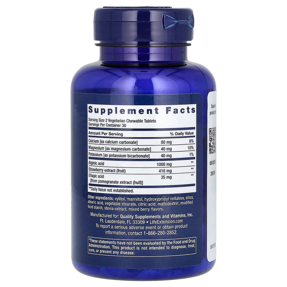 Ingredienserne er omhyggeligt udvalgt for både effektivitet og sikkerhed. Alginsyre er en veletableret ingrediens med en lang historie af sikker brug. Kaliumbicarbonat, calcium og magnesium er alle veletablerede mineraler, der er sikre ved anbefalet brug. Jordbærekstraktet og granatæbleekstraktet er naturlige ingredienser, der generelt anerkendes som sikre.