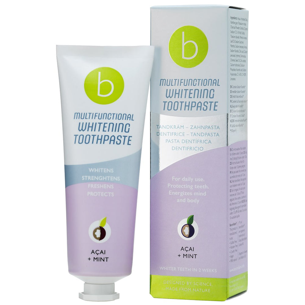 BeConfident Multifunctional Whitening Toothpaste (Coconut and Mint - 75ml) är det perfekta valet för dig som vill ha ett vitare leende och en friskare mun. Med sin högkvalitativa, veganska och allergivänliga sammansättning erbjuder den en mängd fördelar, inklusive effektiv tandblekning och skydd mot karies. Dessutom är den säker och kvalitetssäkrad genom rigorösa tester. Investera i din munhälsa idag och upplev skillnaden med BeConfident - ett smart val för både din hälsa och ditt leende!