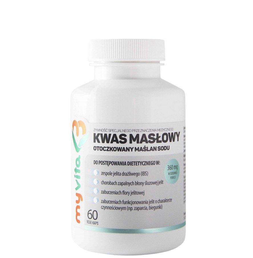 Myvita - Butyrinsyra (natriumbutyrat) 360mg från Myvita är ett kosttillskott som koncentrerat levererar natriumbutyrat, den saltform av butyrinsyra som ofta används i tillskott för sin stabilitet och hanterbarhet. Produkten är avsedd för den som vill komplettera sitt intag av den kortkedjiga fettsyran butyrinsyra i en lättadministrerad form. Förpackningen anger 360mg per kapsel/enhet i produktnamnet, vilket ger en tydlig indikation på koncentrationen av aktiv substans i varje doseringsenhet. Myvita-positionen i marknaden är att erbjuda rena, koncentrerade substansprodukter anpassade för konsumenter som söker specifika mikro- och makronäringsämnen utöver vanlig kost.