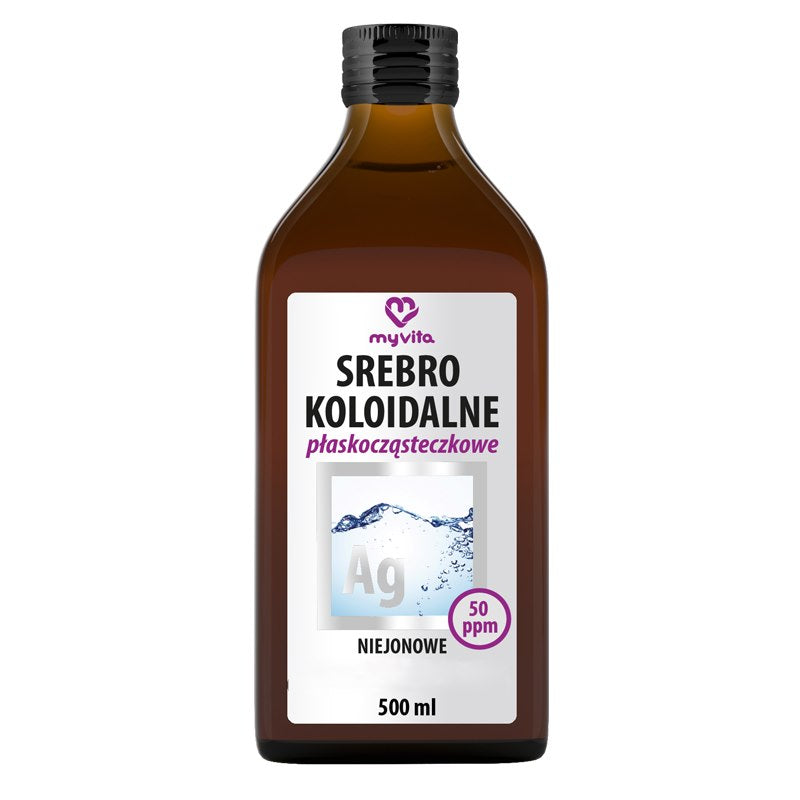 MyVita Kolloidalt silver icke-joniskt 50 ppm från MyVita är en vätskeformulering där ren silver är dispergerad i destillerat vatten i en koncentration om 50 delar per miljon (ppm). Produkten marknadsförs av MyVita och levereras i en ljusskyddad förpackning för att bevara vätskans visuella och kemiska stabilitet. Det som särskiljer denna variant är att den anges som icke-jonisk, vilket i praktiska termer syftar på att huvuddelen av silvret förekommer i metallisk partikelform snarare än som lösta silverjoner. Denna formulering är avsedd för användare som söker en ren, vätskebaserad silverpreparat med definierad partikelkoncentration för olika icke-medicinska tillämpningar. Produktinformationen anger inga listade ytterligare ingredienser; etiketten noterar därmed: "Ingredienser: Inga ingredienser listade." Samtidigt beskriver produktnamnet och förpackningsinformationen att kolloidalt silver är huvudkomponenten. För kunder som värdesätter tydlig ppm-angivelse och en icke-jonisk framställningsmetod erbjuder denna produkt en enhetligt definierad silverkoncentration som är lätt att integrera i icke-terapeutiska formuleringar, provningsrutiner eller andra specifika användningsområden där en vätskeburen silverberedning efterfrågas.