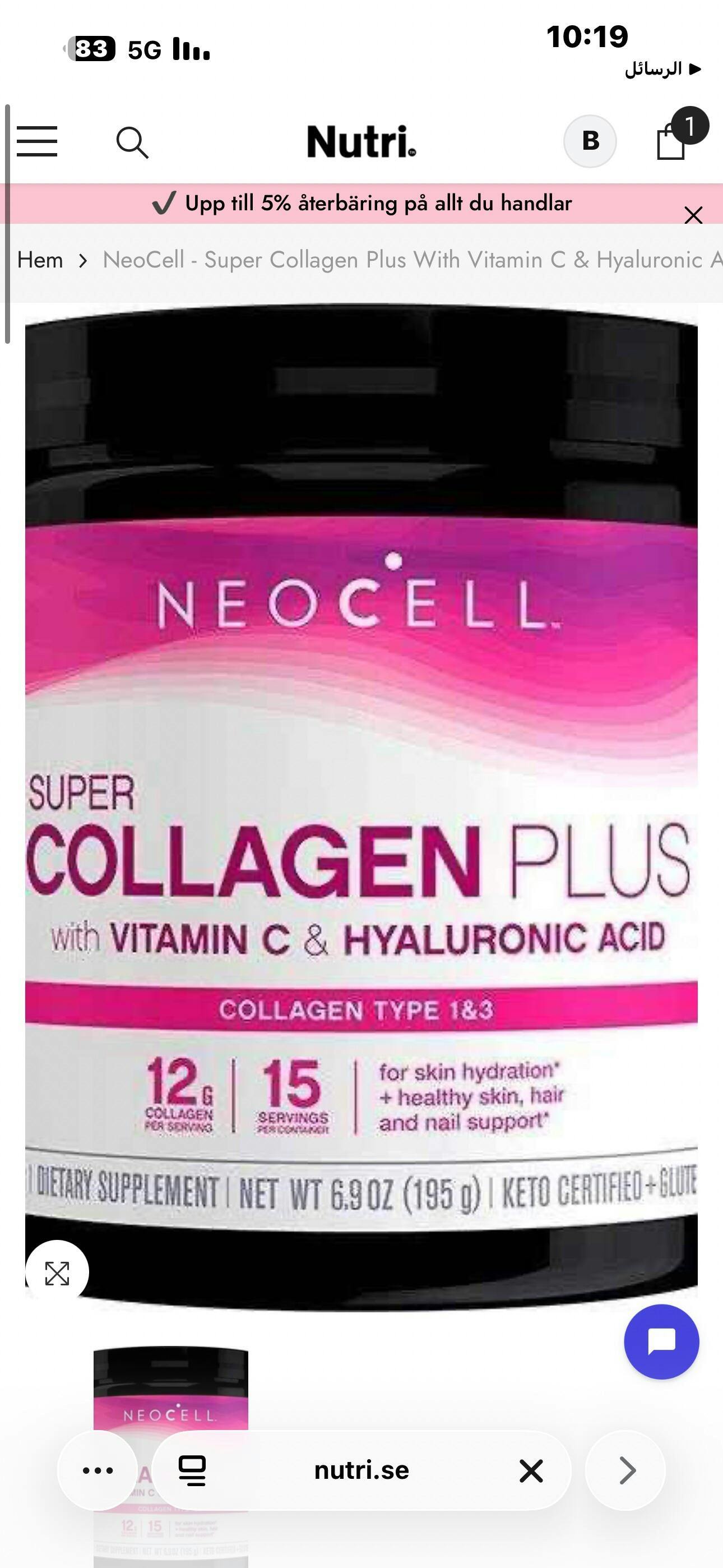| Ingredienser: | Hydrolyserad bovint kollagen, Vitamin C (askorbinsyra), Natrium, Hyaluronsyra, Amla (frukt) extrakt |
